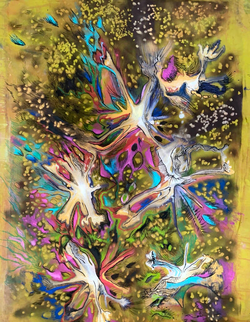 . Peza da exposición Continuo. Tintas acrílicas sobre tea. 280x 220 cm.
