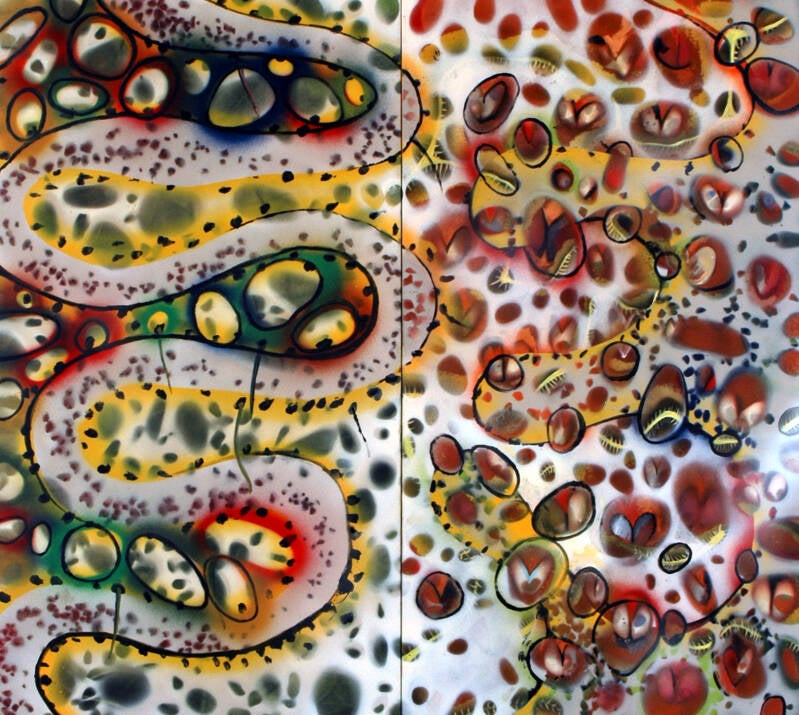 . Peza da exposición Deconstrución. Tintas acrílicas e óleo sobre lenzo. 150x170 cm.