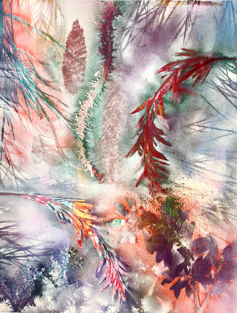 Peza da exposición Natureza alterada. Tintas acrílicas e tintas de gravado. 94x71 cm.